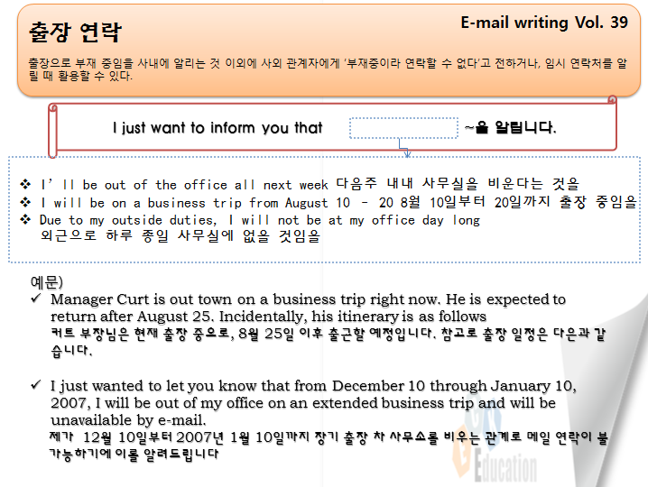 ECK Business▶ 이메일쓰기_Vol.39 출장 연락