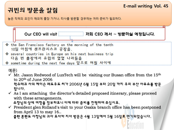ECK Business▶ 이메일쓰기_Vol.45 귀빈의 방문을 알림