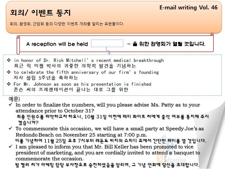 ECK Business▶ 이메일쓰기_Vol.46 회의/ 이벤트 통지